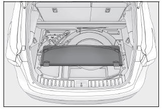 | ATENÇÃO Se as coberturas do assoalho forem abertas ou removidas Recoloque-as nas posições originais antes de conduzir o veículo. Um acidente poderá ocorrer caso um ocupante seja atingido pelas coberturas do assoalho ou pelos itens armazenados na cobertura sob a bandeja, em caso de frenagem súbita. |